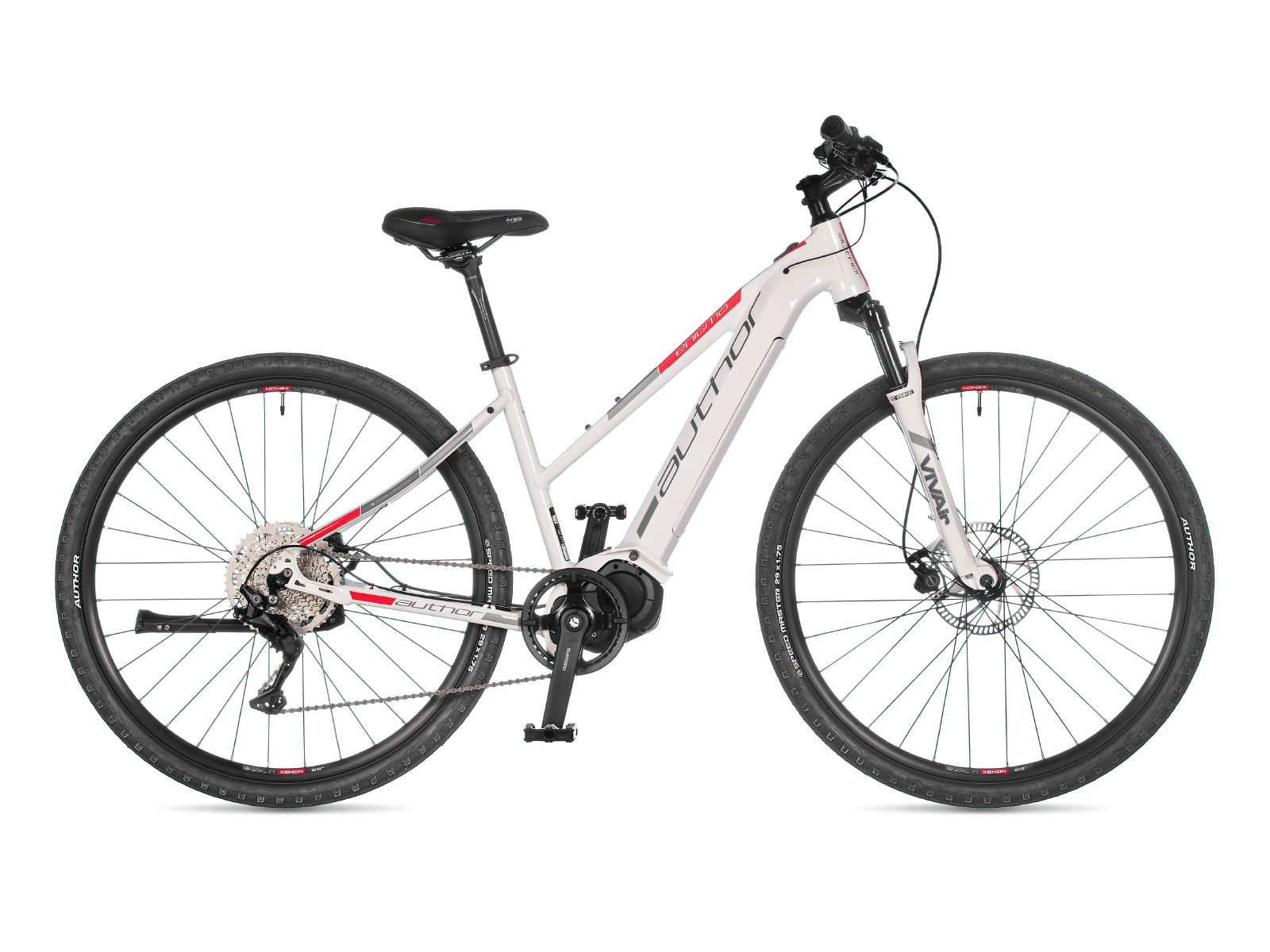 Модель ENIGMA Год 2021 Материал рамы Алюминий (Alloy) Рама/описание double butted hydroformed alloy 6061 29" (9) (integrated battery) Тип вилки Амортизационная (воздух) Вилка/регулировки RST ViV Air TnL air, lock out 1.5" tapered column (80 mm) Спицы black stainless steel 2.2 mm Обода AUTHOR Xenon 29 32 holes Резина VITTORIA Barzo 29" × 2.10" Тормоз TEKTRO Gemini disc hydraulic (7" rotors) Тормозные ручки TEKTRO Gemini WS Уровень оборудования Продвинутый Шифтеры SHIMANO Deore (10) Переключатель передний - Переключатель задний SHIMANO Deore Цепь KMC e10T Каретка SHIMANO Steps Шатуны SHIMANO Steps E-6100 38 teeth 170 / 175 mm cranks Количество скоростей 10 Руль AUTHOR 15 mm 660 / 680 mm Рулевая колонка AUTHOR Integrated 1,5" Вынос AUTHOR alloy Седло AUTHOR Area Gel Подседельный штырь AUTHOR alloy (27.2) Педали AUTHOR Non Slip alloy Втулка передняя AUTHOR Xenon 32 holes Вес 20,9 kg / 17" Втулка задняя AUTHOR Xenon 32 holes -
